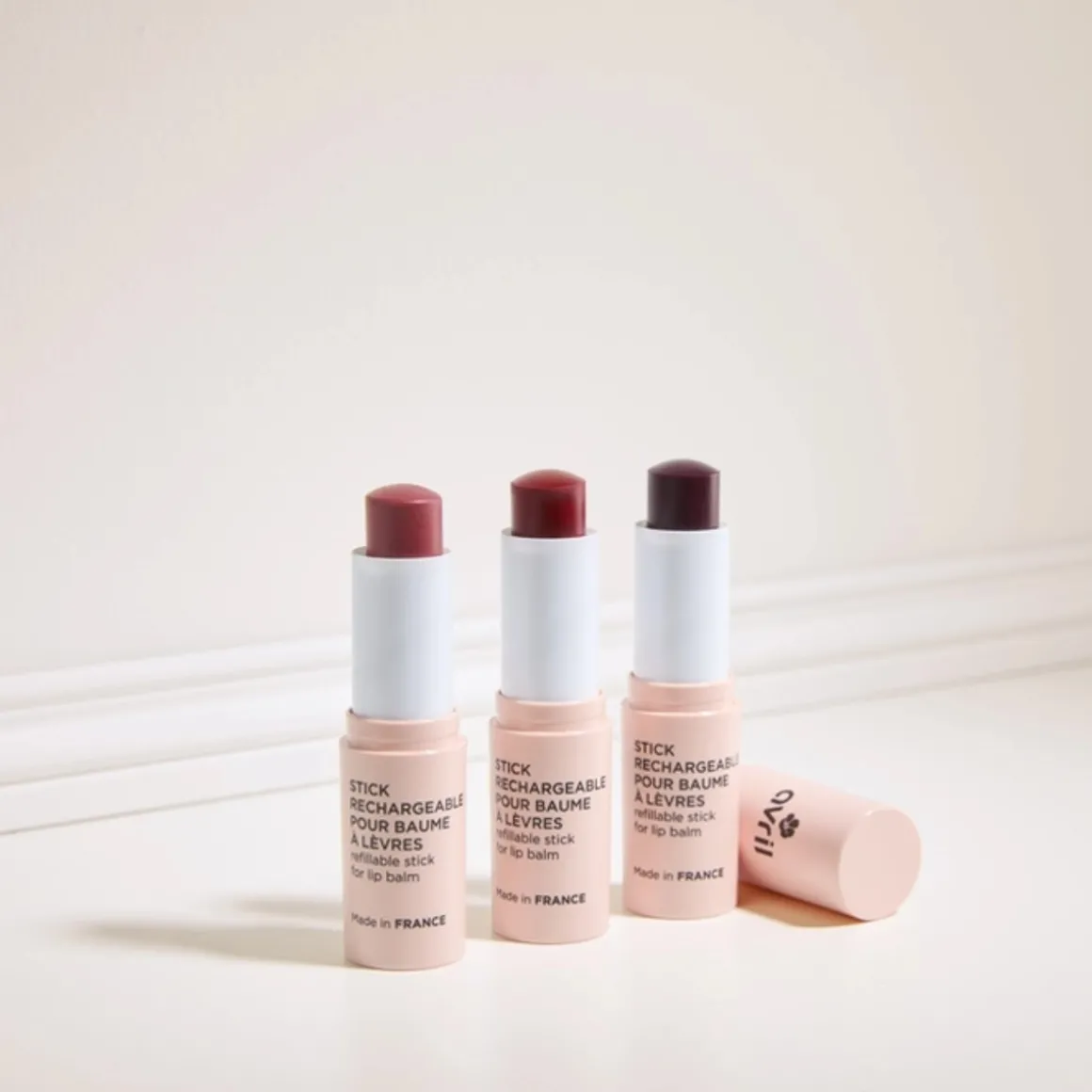 Ce baume a également un autre atout de taille : nous avons imaginé un système de recharge afin de vous aider à réduire les déchets dans la salle de bain. Pour profiter de votre baume, procurez-vous la recharge cerise + le stick vide. Insérez la recharge dans votre stick : c’est prêt !