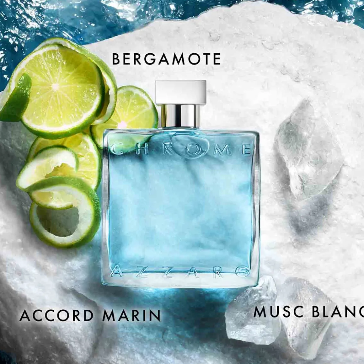 Designé comme une eau pure, Chrome d’Azzaro est un parfum qui semble créé pour étancher la soif de complicité entre l’homme qui le porte et son fils. Véritablement créé pour les hommes d’âge mur, ceux qui ont à cœur les moments les plus précieux d’une vie : la complicité entre un père et son fils, Chrome distille un bouquet très frais, apaisé mature et profond.