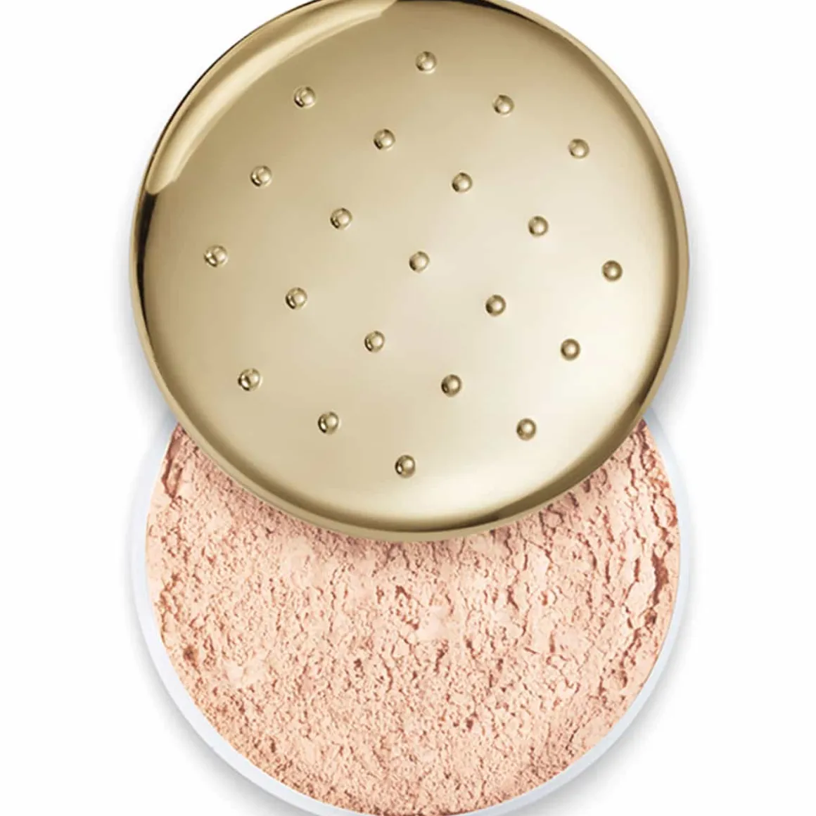 Présentée dans son boîtier galbé doré à picots la poudre libre s’applique généreusement à la houppette.