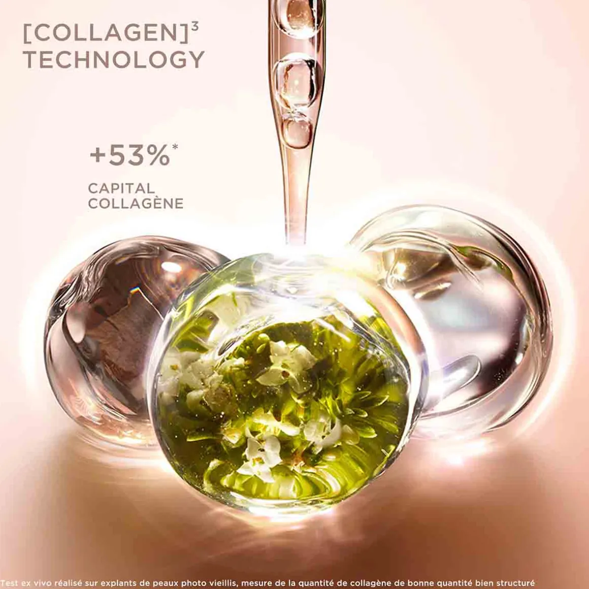 Au cœur de sa formule, la technologie exclusive*** [COLLAGEN]3 TECHNOLOGY cible la quantité, la qualité et la structure du collagène*. Un puissant trio d’actifs pro-collagène pour une action ciblée qui aide à améliorer la fermeté de la peau :