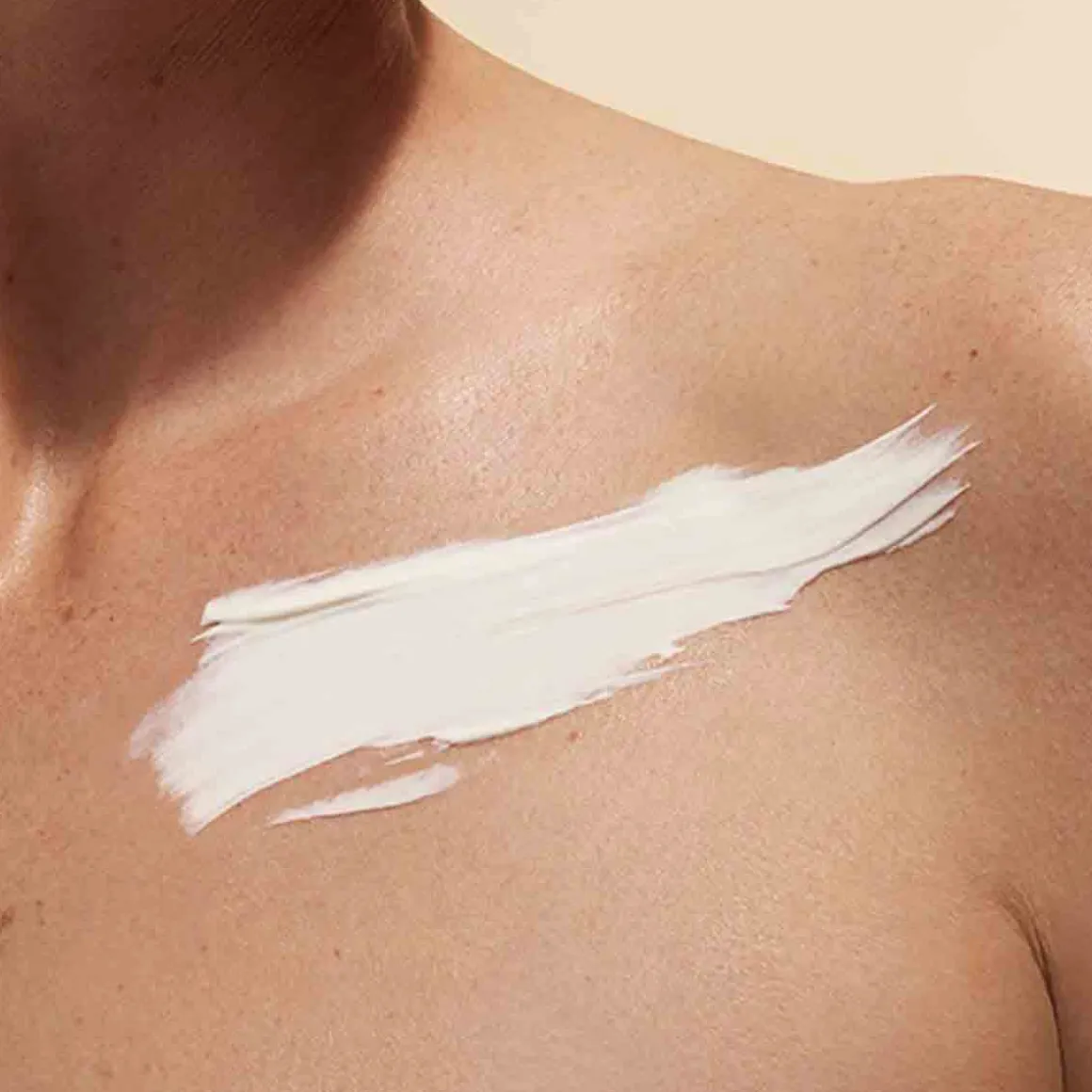 Le soin corps haute protection à la texture fondante préserve visiblement du vieillissement prématuré et prend soin de toutes les peaux.
