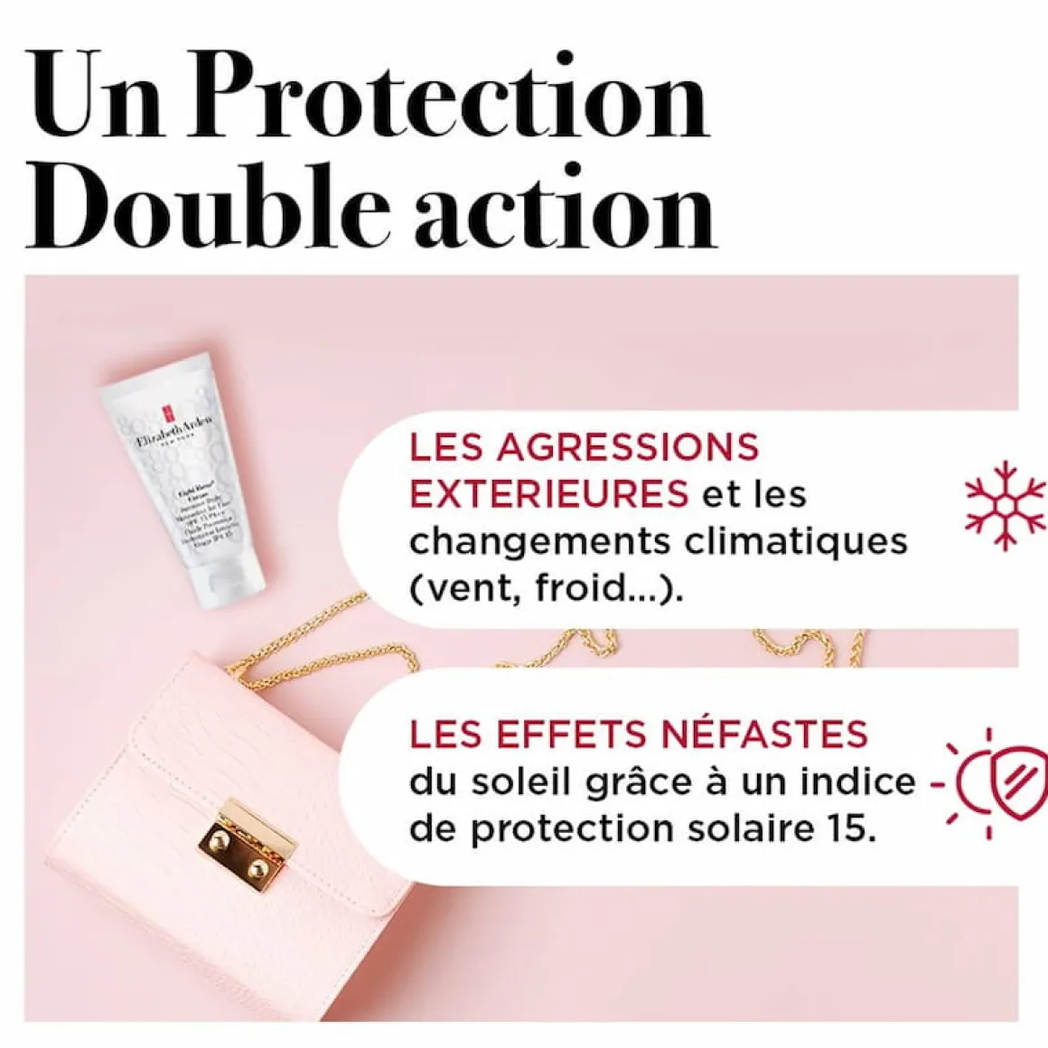 Il protège la peau des agressions extérieures et des changements climatiques (soleil, vent, froid), et protège également des effets néfastes du soleil grâce à un indice de protection solaire 15.