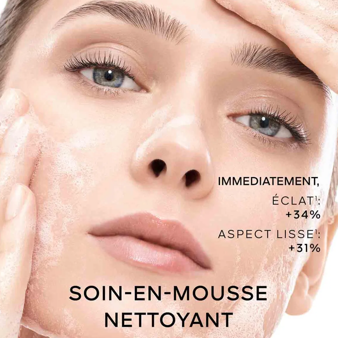 Le Soin-en-Mousse élimine les impuretés et les traces de maquillage tout en préservant la barrière cutanée. Associant miels réparateurs et gelée royale, il est formulé avec 90% d’ingrédients d’origine naturelle². Cette gelée enrichie en micro-billes lipidiques qui fondent au contact de la peau offre une sensation de confort, même exposée à l’eau calcaire. La peau est d’apparence hydratée et plus jeune.