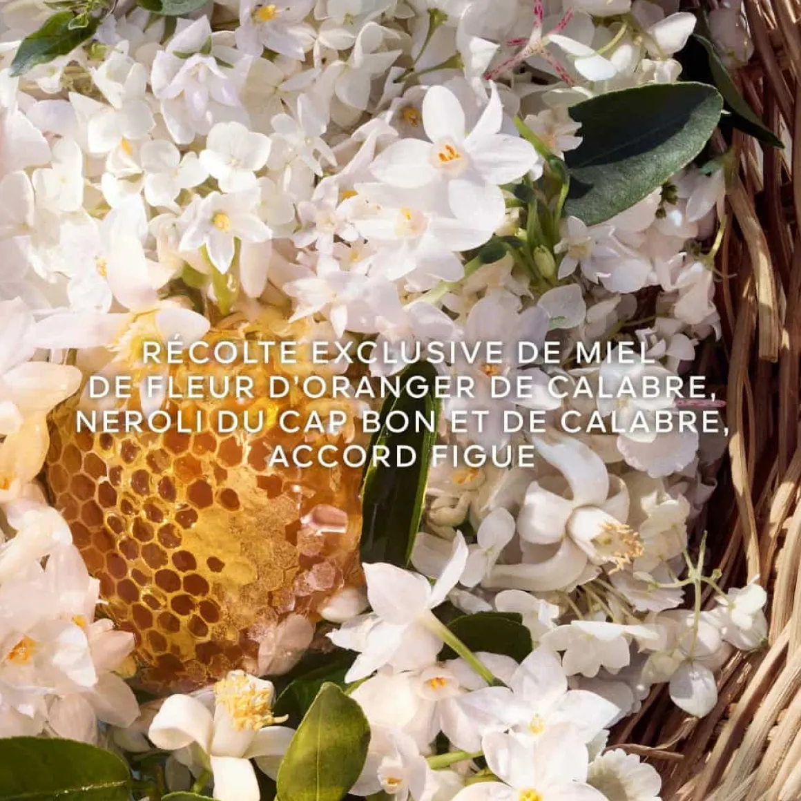 « Je me suis inspirée de la rencontre entre l’abeille et la fleur d’oranger dont découle un précieux nectar floral et hespéridé, tel un miel de néroli. » – Delphine Jelk, Parfumeure Guerlain