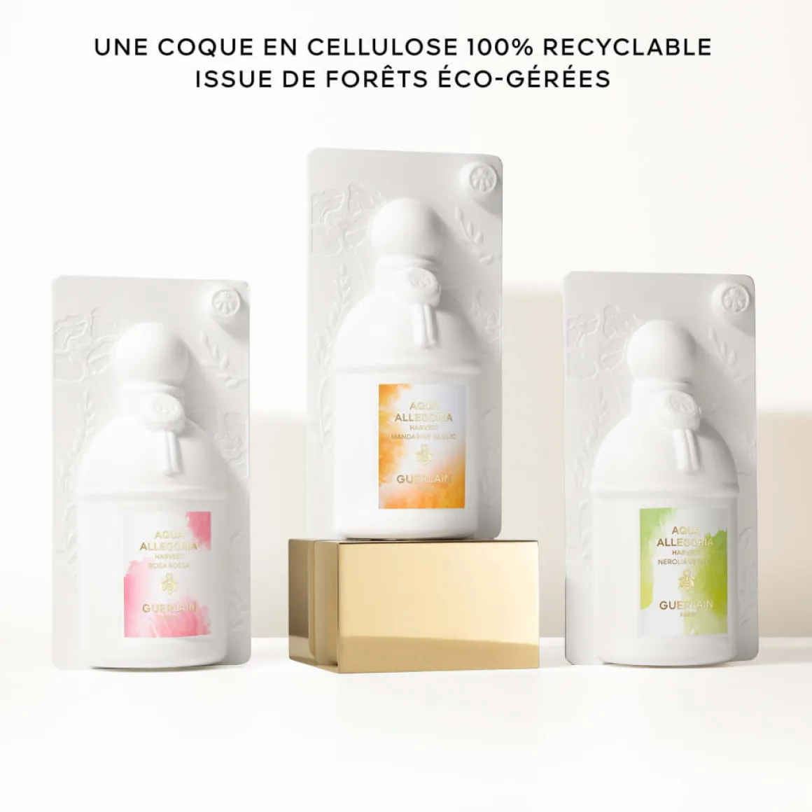 Véritable symbole de l’engagement de Guerlain pour la planète, les parfums Aqua Allegoria sont composés jusqu’à 95% d’origine naturelle*. L’alcool de betterave française contenu dans leurs formules est issu de filière engagée pour une agriculture responsable.