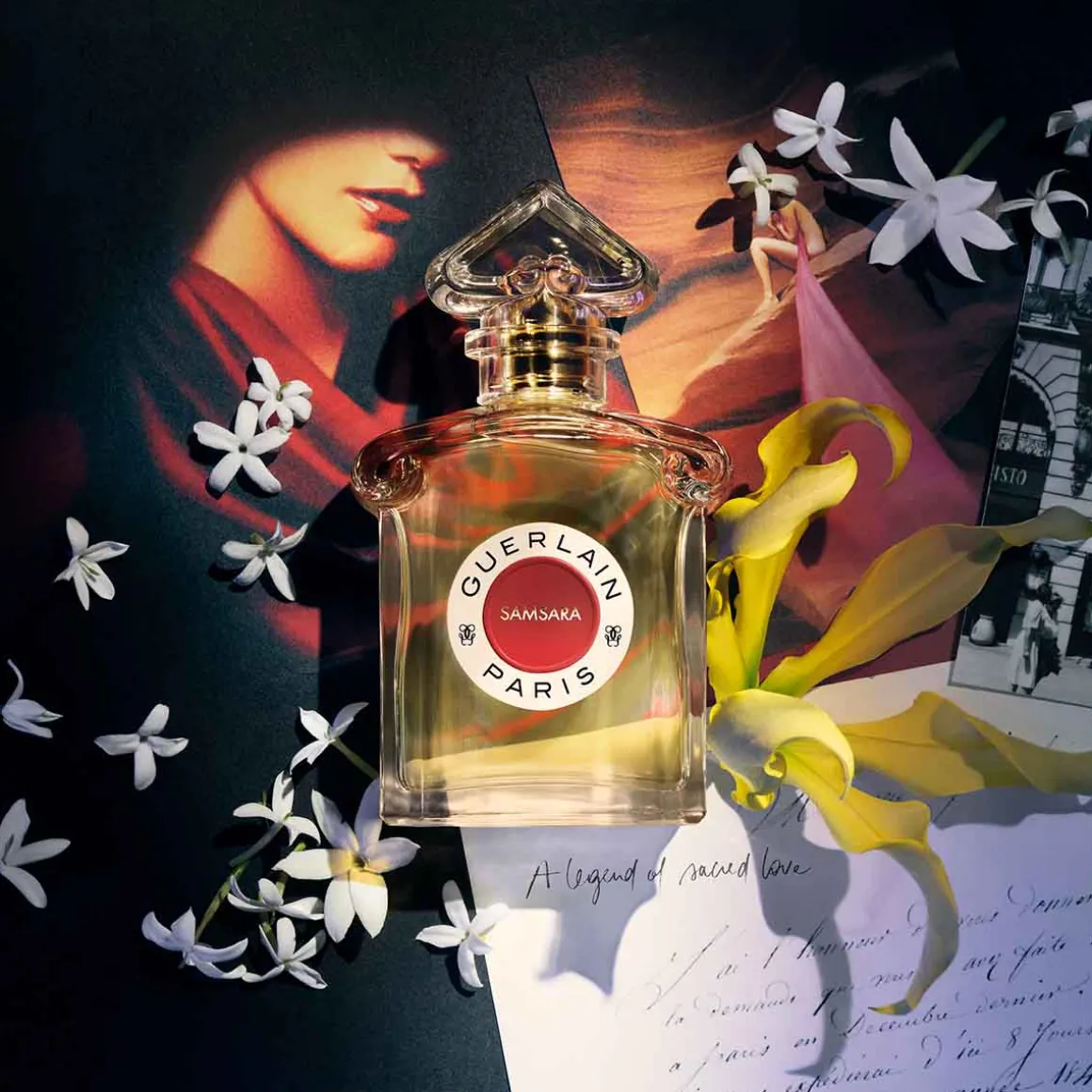 Samsara s’inscrit dans la collection des parfums Légendaires de Guerlain. Une collection constituée de fragrances emblématiques, composées depuis plus d’un siècle par 5 générations de Parfumeurs. Des parfums mythiques, profondément novateurs pour leur époque, qui composent une bibliothèque olfactive unique, trésor incomparable et inégalé, que la Maison Guerlain s’attache à faire perdurer.
