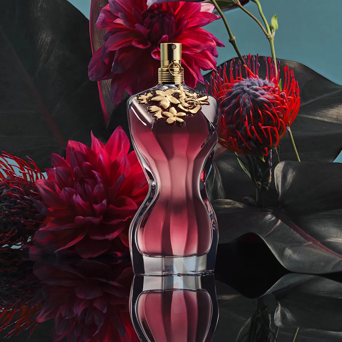 Courbes féminines, taille fine et collier de fleurs, le flacon La Belle est un hymne à la fémininté ultra sensuelle.