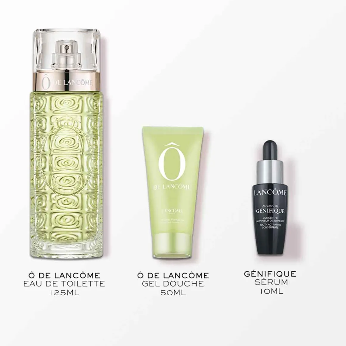 Pour la fête des mères, offrez-lui un coffret aux couleurs du bonheur avec Lancôme. Parce que chaque mère est unique, choisissez le coffret qui lui correspond, pour un cadeau inoubliable. Découvrez l’iconique eau de toilette fraîche et sensuelle Ô de Lancôme. Ce coffret contient : • Ô de Lancôme Eau de Toilette 125ml • Ô de Lancôme Gel Douche Parfumé 50ml • Advanced Génifique Sérum 10ml DÉCOUVREZ DANS CE COFFRET Ô DE LANCOME EAU DE TOILETTE L’emblématique eau de toilette Ô de Lancôme est une fragrance fraîche et vivifiante, délicieusement spontanée et naturelle, qui incarne la légèreté et de la joie de vivre. Une cascade de notes rafraîchissantes : des éclats d’agrumes, enrobés de Jasmin et de Chèvrefeuille, associés aux notes aromatiques de Basilic, Romarin et Coriandre. En fond, la mousse de Chêne dévoile un sillage sensuel. Ô DE LANCÔME GEL DOUCHE PARFUMÉ Le Gel Parfumé pour le Bain et la Douche Ô de Lancôme nettoie parfaitement la peau en douceur et lui laisse une délicieuse sensation de fraîcheur parfumée. ADVANCED GÉNIFIQUE SERUM Le sérum iconique Lancôme, après un flacon seulement, les signes clés de jeunesse paraissent visiblement améliorés et c’est cliniquement prouvé : • Eclat +52%* • Peau lisse +43%* • Teint uniforme +42%* • Ridules -42%* • Rides – 46%* *étude clinique, 34 femmes, après 8 semaines d’utilisation Lancôme la marque française du bonheur depuis 1935.