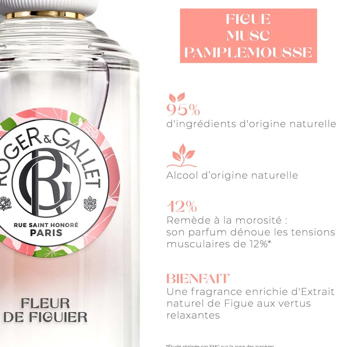 | Composition | Note de tête : Pamplemousse Note de coeur : Figue Note de fond : Muscs |