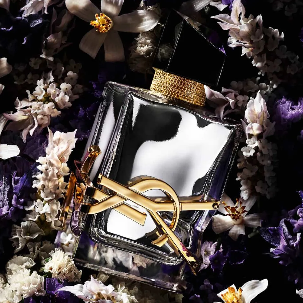 Le flacon bijou par excellence, inspiré par l’alliage tout en tension des deux matériaux les plus fastueux de la joaillerie : l’Or et le Platine. L’extravagance du Cassandre doré oversize incrusté dans le verre est sublimée par le contraste de ce nouveau flacon miroir argenté et métallique. Le flacon de LIBRE dans son interprétation la plus précieuse, une préciosité absolue.