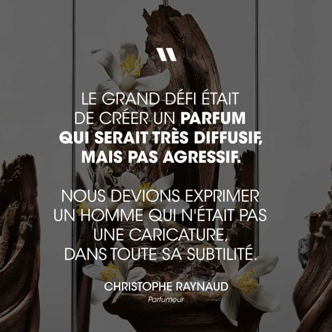 En fond, un accord de bois sensuels et texturés, avec un coeur de patchouli d’Indonésie et de l’Ambrofix™, apportant puissance et tenue.