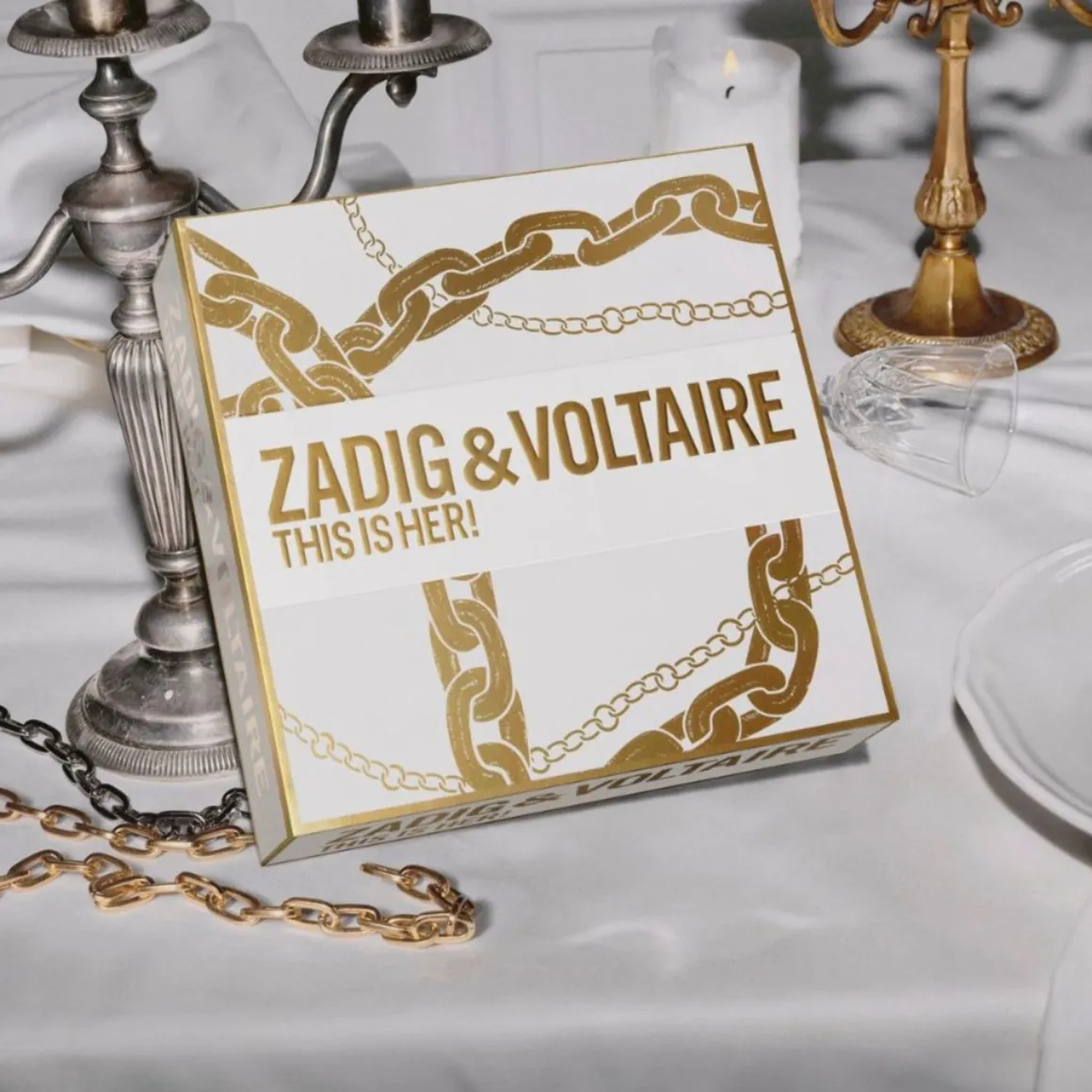 Pour Noël, faites-vous plaisir ou offrez à vos proches le cadeau idéal, le parfum le plus emblématique de ZADIG&VOLTAIRE, This is Her! Dénouez les chaînes dorées et scintillantes du coffret This is Her! et célébrez les fêtes de fin d’année avec une fragrance éblouissante.
